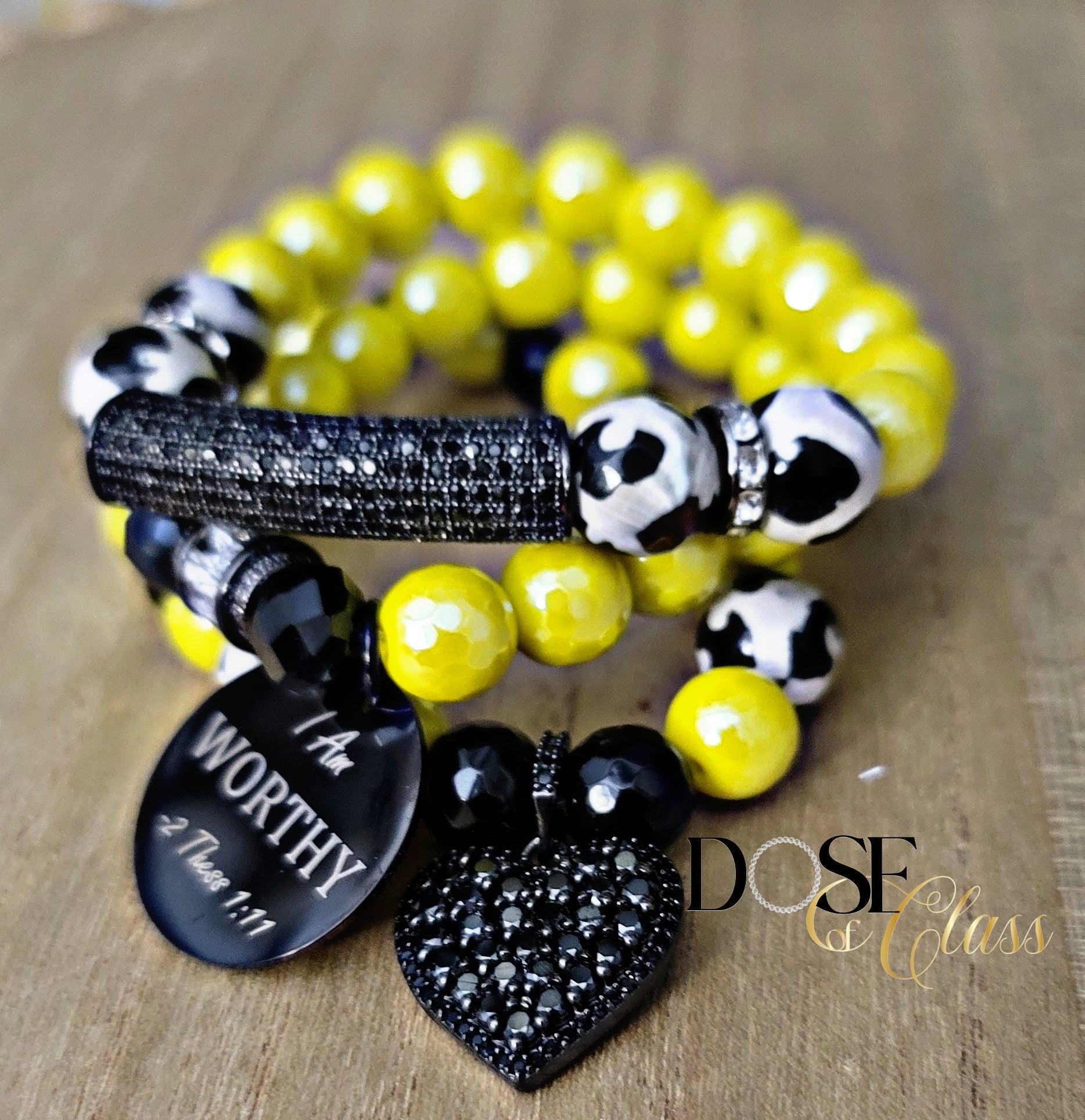 Yellow Faceted Agate bead with Black white Tibetan